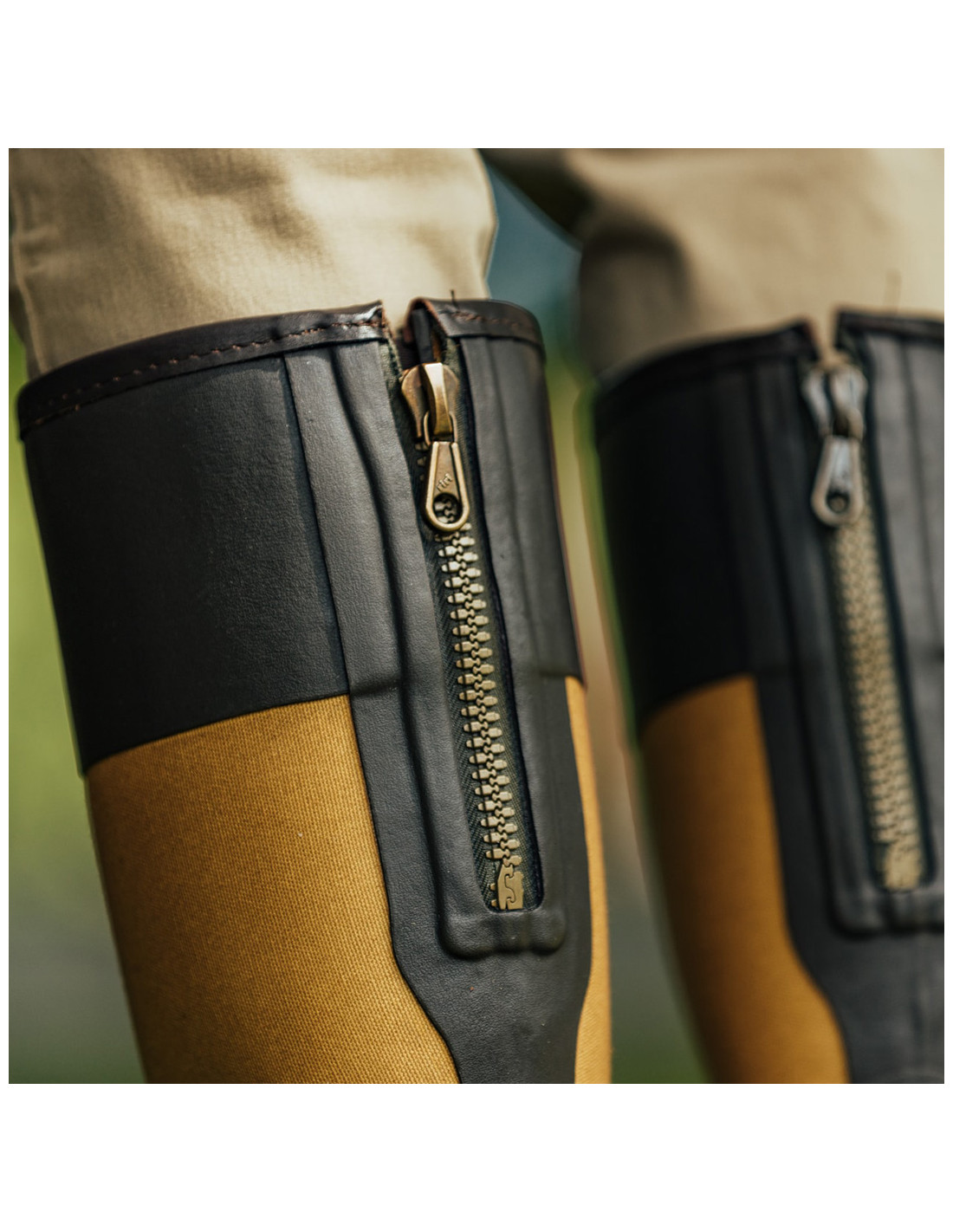 Det unika textilskaftet består av en kraftig bomullscanvas som har vulkaniserats på 1,5 mm naturgummi, vilket gör stöveln stabil.