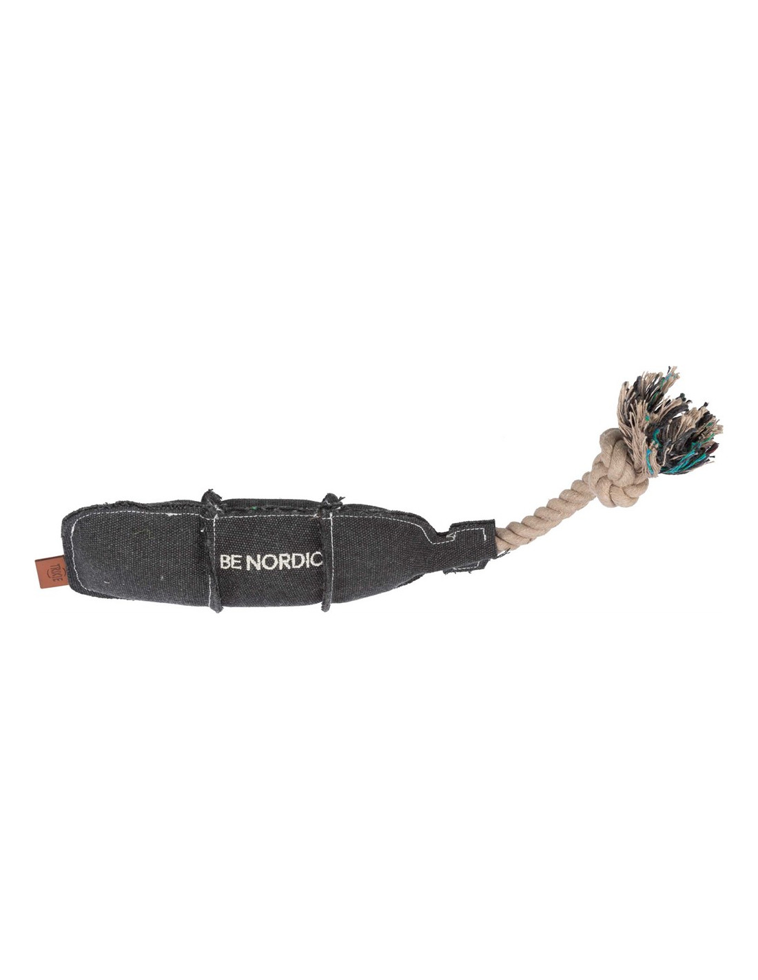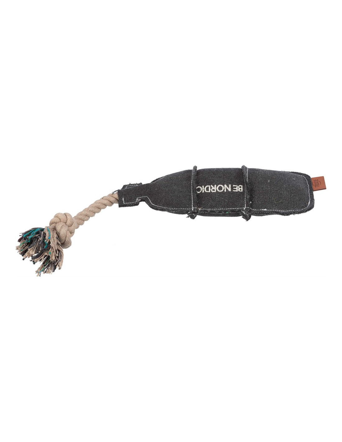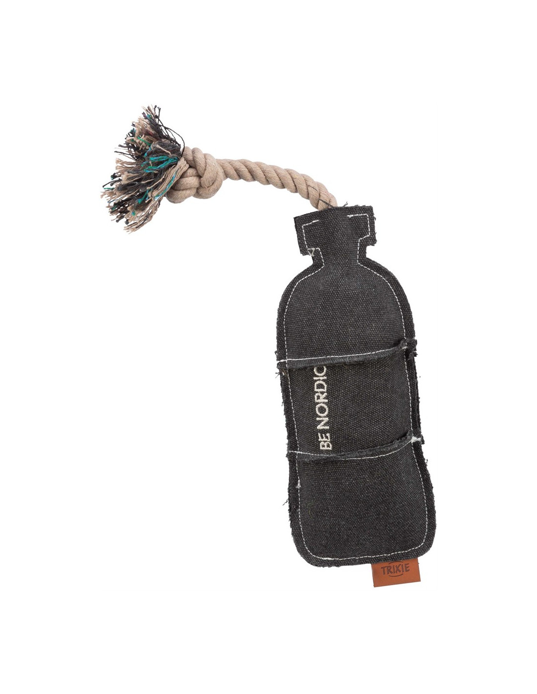 Hundleksak i form av en flaska på rep/tyg med ljud