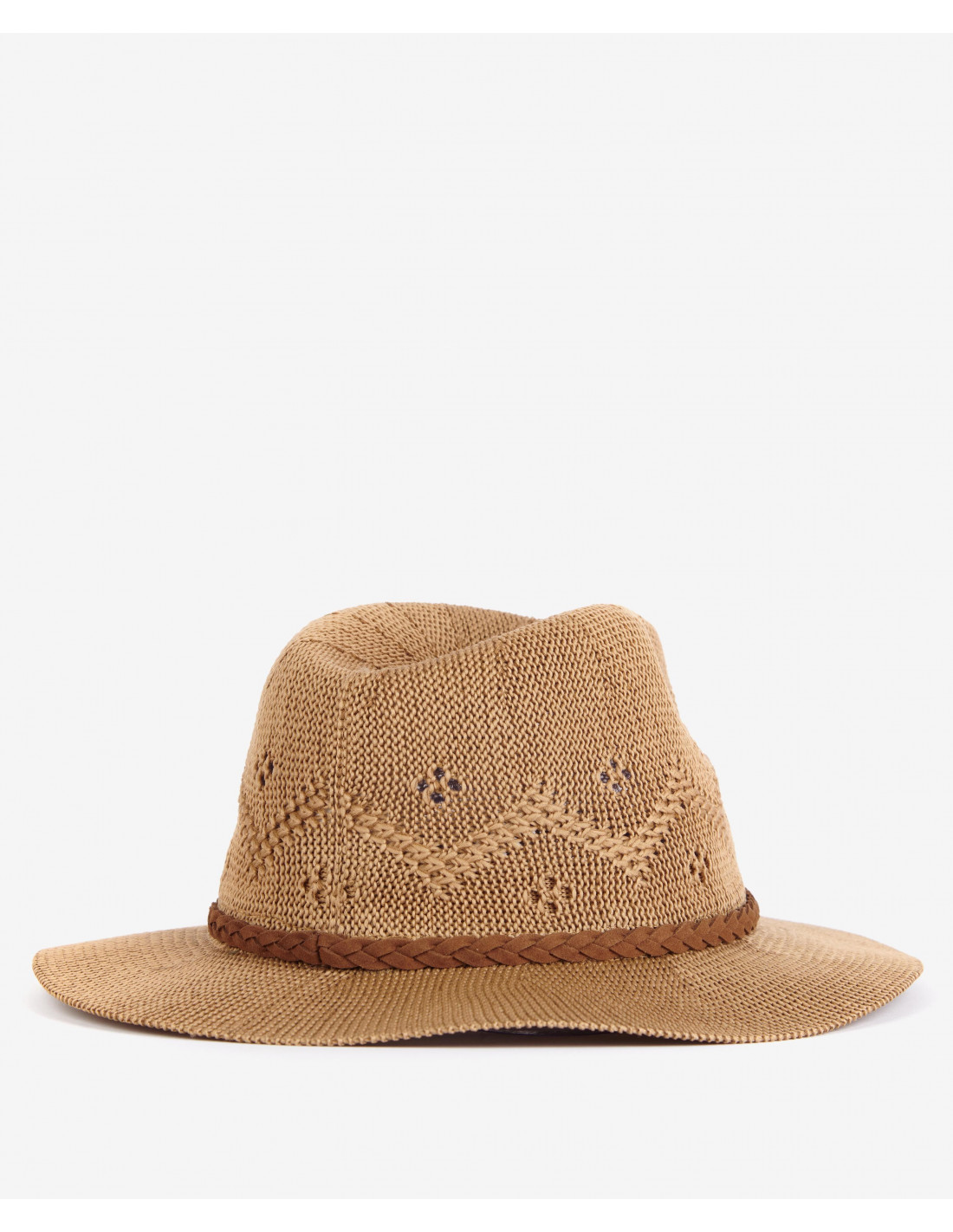 Tillverkad i en virkliknande design för en luftig sommarkänsla, är denna trilby detaljerad med ett flätat läderpannband för en traditionell lantlig look, avslutad med en subtil ID-stång i metall på sidan.