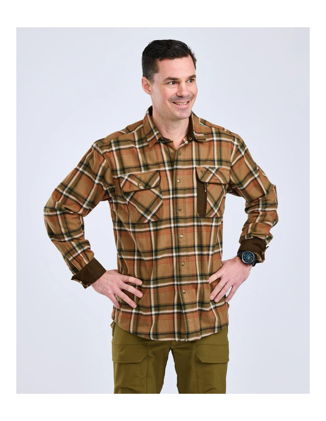 Exklusiv och kraftig flanellskjorta i snygga färger med detaljer i mockaimitation.