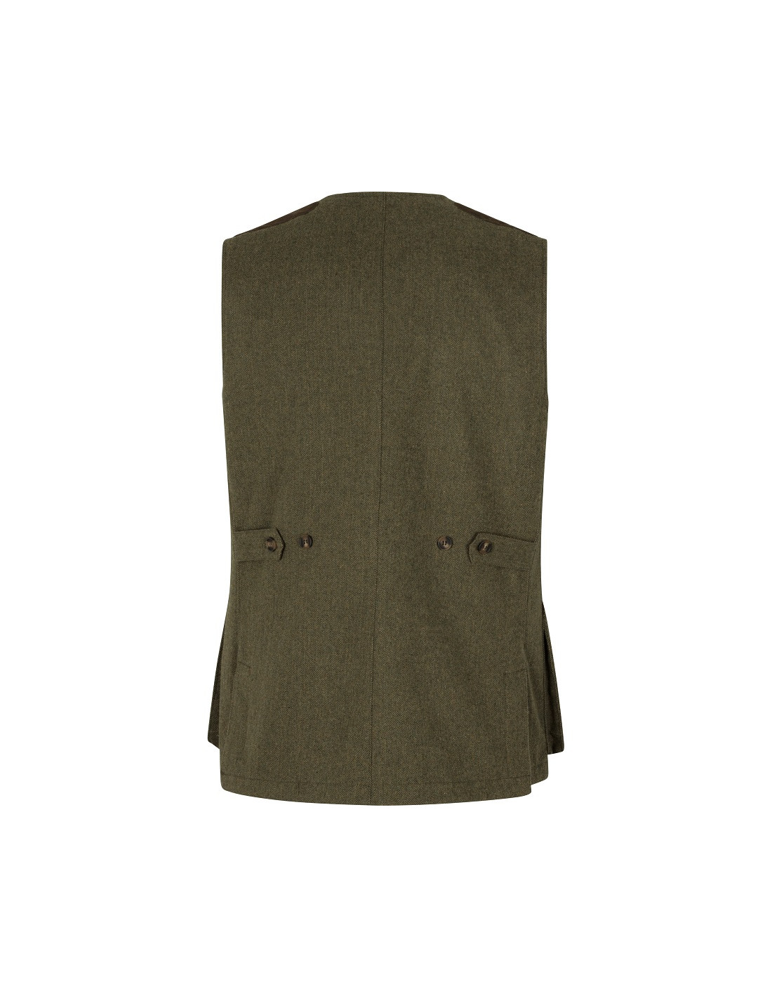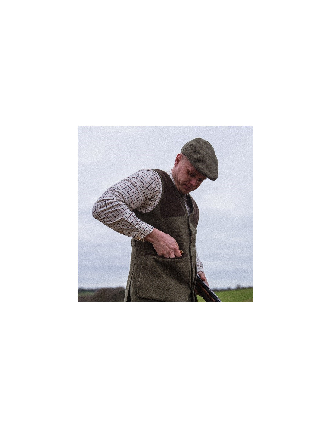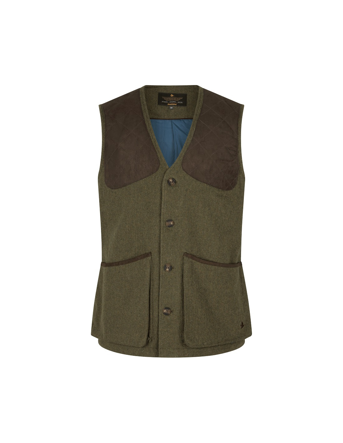 Den har detaljer i mockaimitation på de quiltade axelklaffarna och gott om förvaringsutrymme med stora framfickor som passar för patronhylsor. Den skräddarsydda passformen garanteras med midjejustering baktill och sprund i sidorna. Perfekt för dig som vill ha en blandning av tradition och funktion i din skytteklädsel.