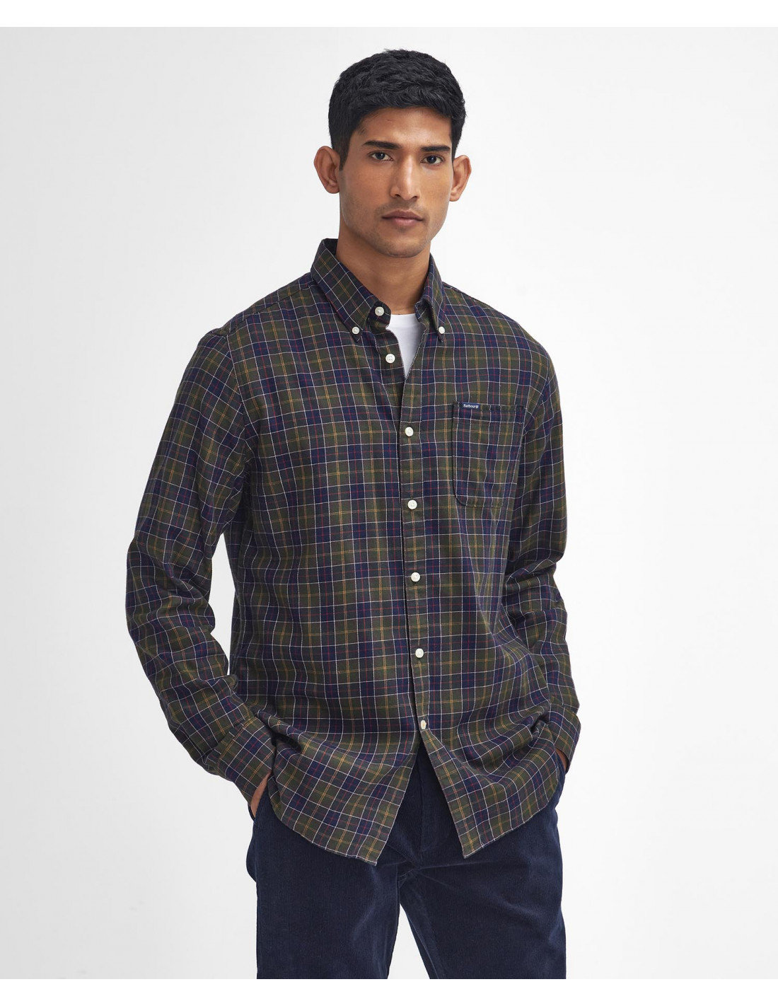 Denna skräddarsydda skjorta har en mindre ruta av den klassiska Tartan rutan. Bröstficka med och ett diskret Barbour-märke.