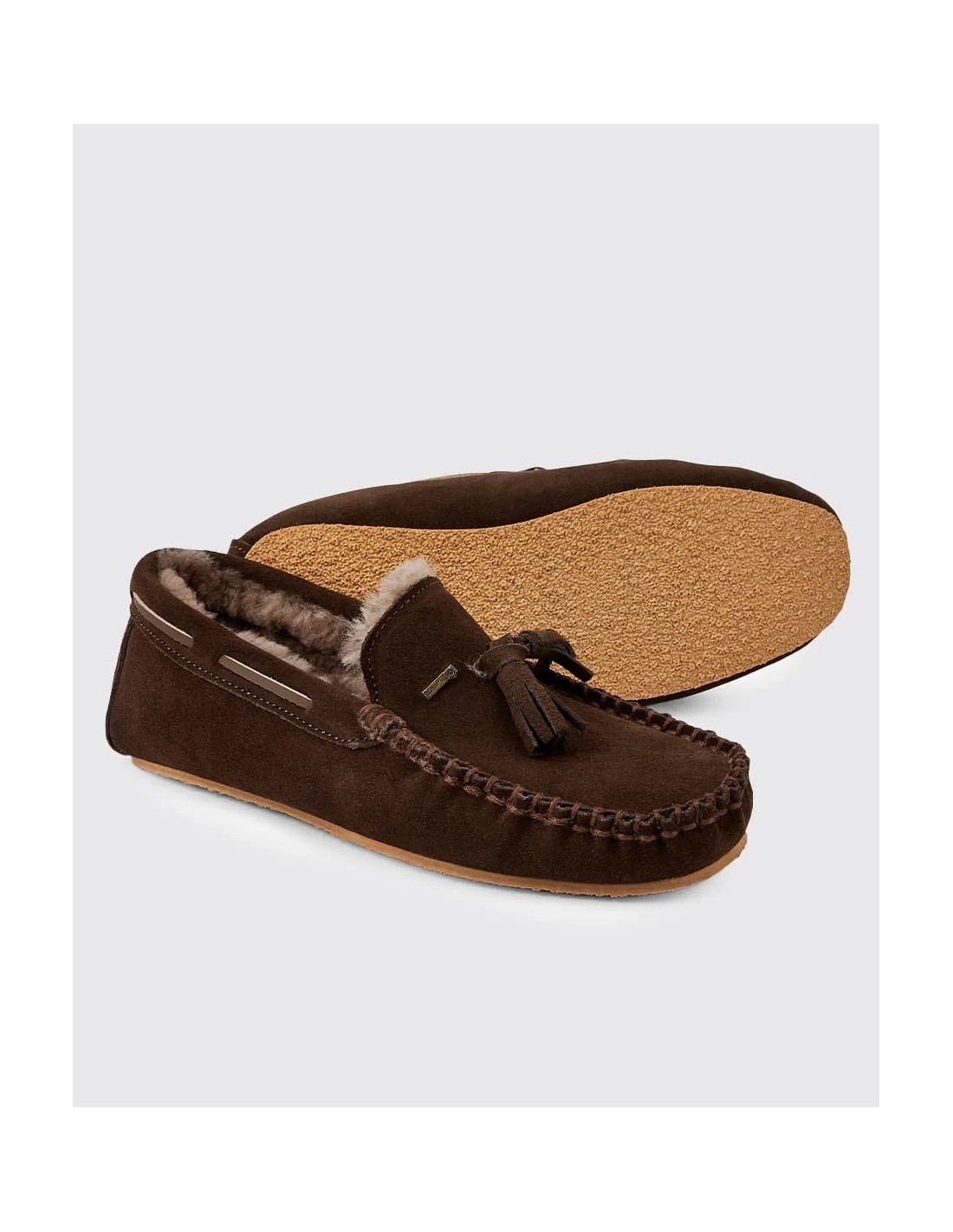 Tillverkad av äkta mocka med en halkfri TPR-yttersula som ger hållbarhet och grepp.